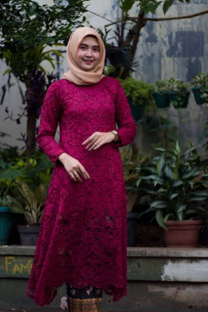 Kebaya brokat floy merah kebaya brukat maroon rok prisket .